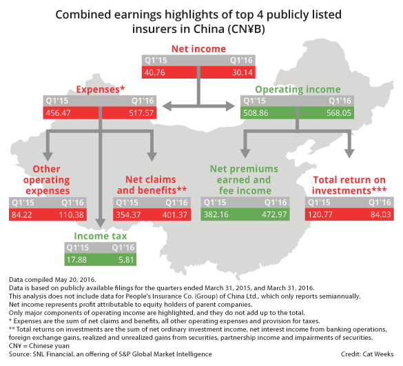 "The higher asset risks will pressurize capital positions of Chinese insurers, exposing them to greater volatility in investment markets," said Eunice Tan, director of insurance ratings at S&P Global Ratings. "Profitability for Chinese insurance groups will decline in 2016-2017 reflecting tougher investment conditions."