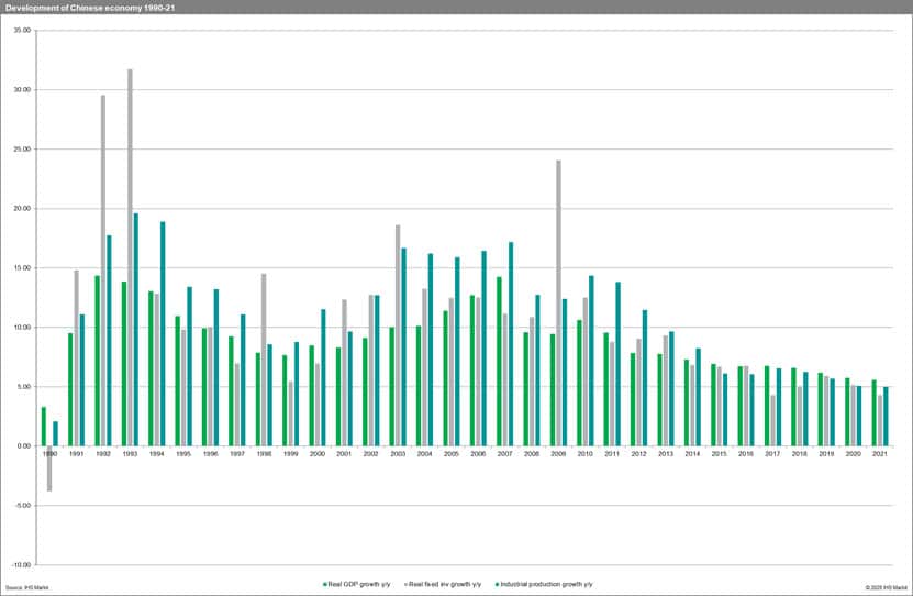 The Chinese economy is slowly slowing down with real GDP y/y growth rates forecasted to 5.7 and 5.6 in 2020 and 2021 respectively (the most recent maximum was reached in 2010, and the rates were even higher prior to the global financial meltdown in 2008). Real fixed investment growth y/y is predicted to reach 5.1 and 4.3, and industrial production 5.1 and 5.0 respectively. The local demand for iron and steel is thus likely to increase but at a lower speed.