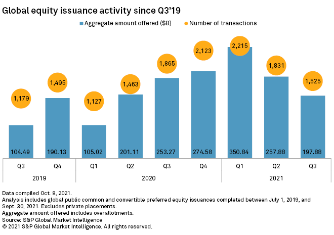 The formation of new blank-check companies came to a near halt earlier in 2021 after the vehicles faced regulatory scrutiny, including the SEC raising questions about the accounting warrants as equity on their balance sheets. However, SPAC IPOs started picking up during the end of the second quarter and the momentum carried into the third quarter, when the number of global SPAC IPOs increase 2.8% sequentially and 16.7% year over year to 112.