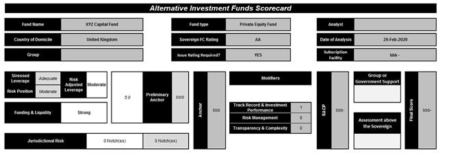 S&P Global Market Intelligence’s Credit Assessment Scorecards provide a valuable framework for assessing credit risk, including access to benchmarks and attribute-driven scoring guidelines.[4] The AIF Scorecard provides an easy-to-use, intuitive structure to evaluate the creditworthiness of funds and assess the credit risk of an AIF’s debt instruments.