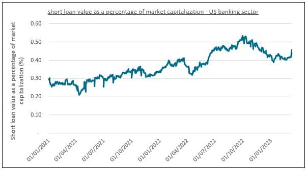 As the recent demise of regional banks in the US reverberates across the global financial system, short interest across the US banking sector has continued to rise. Over the past year, short loan value as a percentage of market capitalization has increased from 0.29% on January 1st, 2022, to 0.46% on March 10th, 2023.