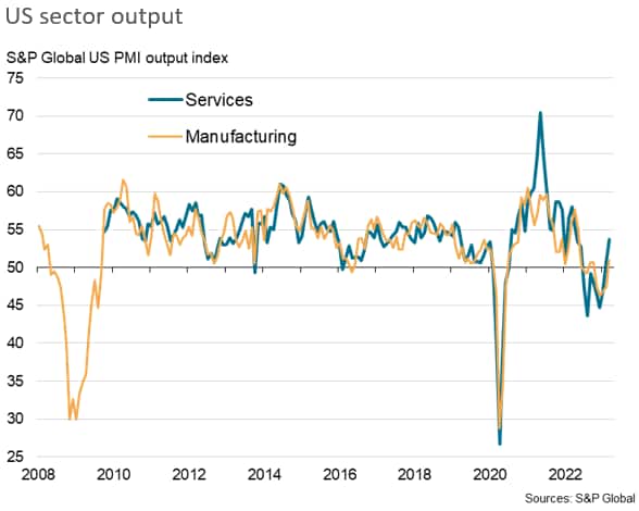 Goods producers recorded the first rise in production since October 2022, partially stemming from improving supply chains, but it was service providers that reported the main thrust to growth, seeing a notable acceleration of business activity to register the quickest expansion since April 2022.