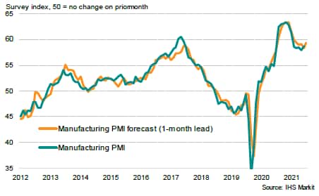 Furthermore, given the timeliness attribute of capturing changes taking place in the manufacturing sector, PMI sub-indices can also be useful in helping to forecast the upcoming month's headline PMI.