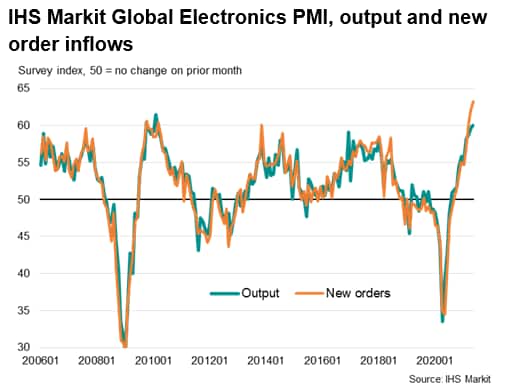 However, since the low points in April and May 2020, the IHS Markit Global Electronics PMI has signalled a very significant rebound. The latest IHS Markit Global Electronics Purchasing Managers' Index for May 2021 reached the highest level recorded in 23 years, boosted by buoyant demand in key markets. Rebounding consumer spending and industrial production in key economies, notably the United States, mainland China, the European Union, and the United Kingdom, is helping to drive demand for a wide range of electronics products.