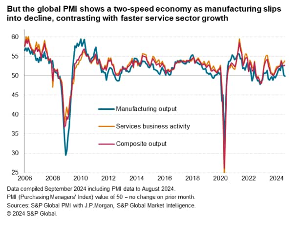 However, with interest rate cutting cycles now in train in the US and Europe, September's PMI data will also be eyed for clues as to whether monetary policy is helping sustain these upturns.