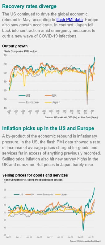 Thus, while the April Fed minutes alluded to potential tapering discussions if the US economy continues to boom in coming months, APAC central banks may be more guarded. However, even in the US we don't expect the interest rate lift-off to occur until 2024 and that large-scale asset purchase will continue at about current rates through this year, followed by a gradual taper next year. A series of Fed speakers commenting in the week ahead will certainly be watched for clarifications on the appetite for tapering.