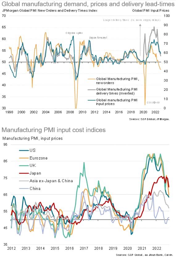 Worldwide manufacturing PMI data revealed that goods producers faced a slowdown in demand in November, though supply constraints and price pressures simultaneously cooled. While uncertainties persist, particularly on the energy prices front and China's latest COVID response, the present fall in industrial prices bodes well for consumer goods prices in the coming months. This also suggests that policymakers may have greater room to manoeuvre in their endeavours to douse the inflation fire.