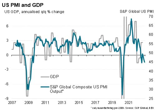 Official data have yet to indicate any significant impact from recent Fed rate hikes, with GDP likely to have risen at an annualised rate in excess of 2% in the fourth quarter. However, the dampening effect of tighter policy is becoming increasingly evident in the survey data, and especially where one would expect to see a detrimental impact from higher borrowing costs: financial services. S&P Global's PMI survey data, based on data collected each month from a representative sample of US companies, showed business activity falling sharply in December, with financial services recording by far the steepest rate of contraction. Consumer facing sectors also struggled, linked to the rising cost of living, and manufacturing faced additional headwinds from a slowing in global trade. While there was some good news from other sectors, notably tech and healthcare, which remained in expansion territory, the overall suggestion is that GDP growth could disappoint in the New Year.