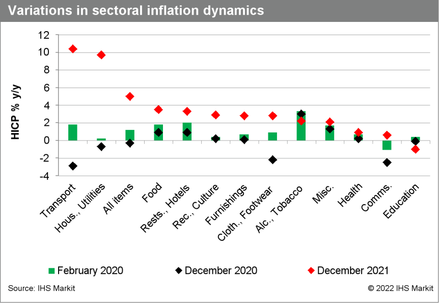 - The final eurozone Harmonised Index of Consumer Prices (HICP) data for December 2021 confirm the main points from the prior 'flash' release, as follows (IHS Markit Economist Ken Wattret):
