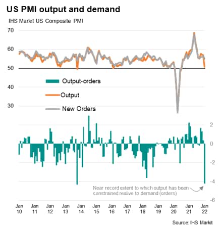 - The January flash PMI is therefore indicative of annualized GDP growth close to stalling at the start of 2022, representing a marked contract to the robust growth of 3.25-3.5% signaled for the fourth quarter of 2021.