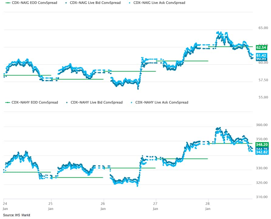 CDX-NAIG closed 61bps and CDX-NAHY 344bps, which is +3bps and +16bps week-over-week, respectively.