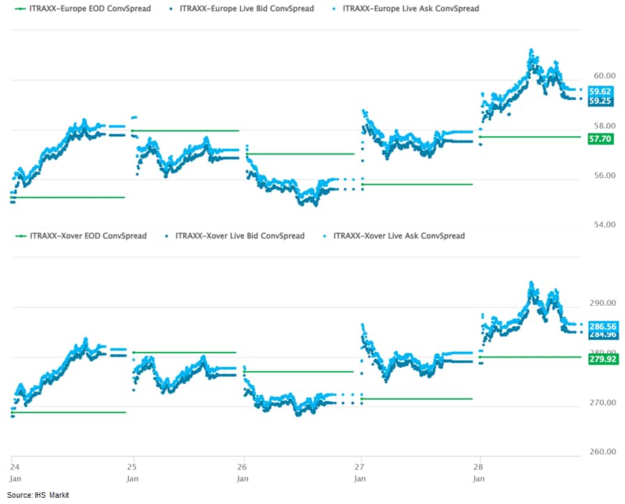 iTraxx-Europe closed 59bps and iTraxx-Xover 286bps, which is +4bps and +17bps week-over-week, respectively.