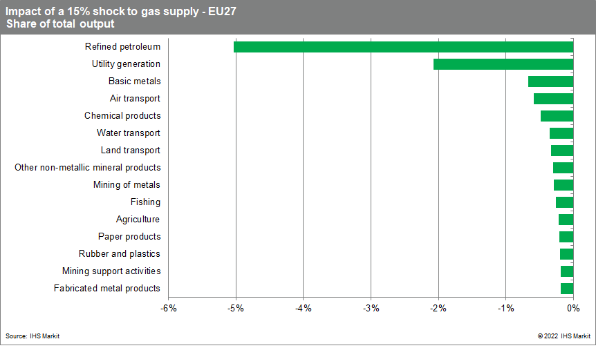 European gas demand curtailment would have major adverse impacts for the industrial sector, particularly the refining, chemicals, plastic, glass, ceramic, and metal industries.