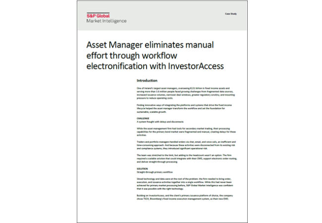 In today's fast-paced primary bond market, a leading Ireland-based asset management firm managing €35 billion in fixed income assets faced challenges with fragmented data and operational inefficiencies. By working with S&P Global Market Intelligence, they implemented a scalable, integrated solution that automated the entire order lifecycle, enabling them to enhance issuance activities without increasing headcount. This transformation positioned the firm to better serve clients and adapt to the rapidly changing market landscape.