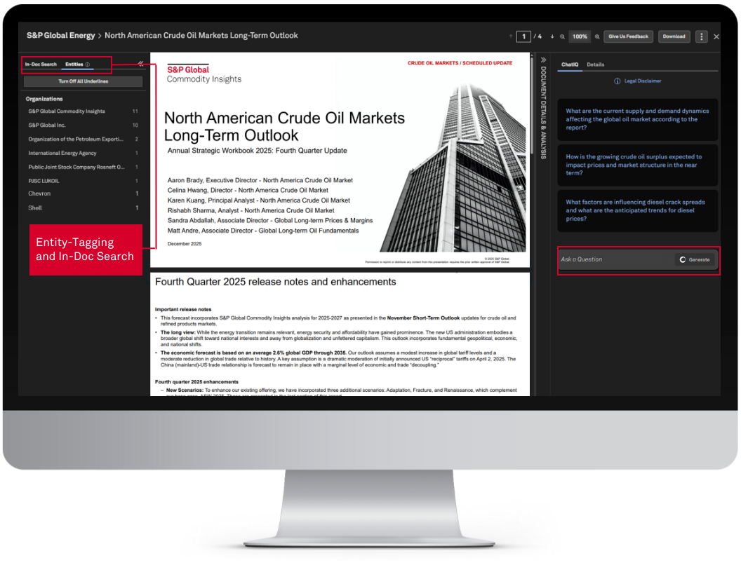 Capital IQ Pro now offers proprietary news & research covering the global energy & commodities value chain for financial institutions. Utilize our AI-powered Document Intelligence tool to extract new insights from thousands of articles & reports. Leverage our industry & market outlooks, price forecasts, and geopolitical insights to stay ahead.