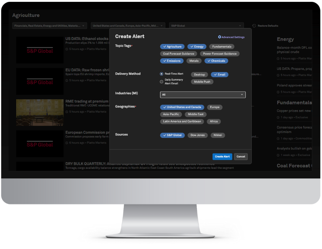 Stay abreast of real-time updates impacting the agriculture, energy, or chemical markets, or the portfolios of companies in these sectors.