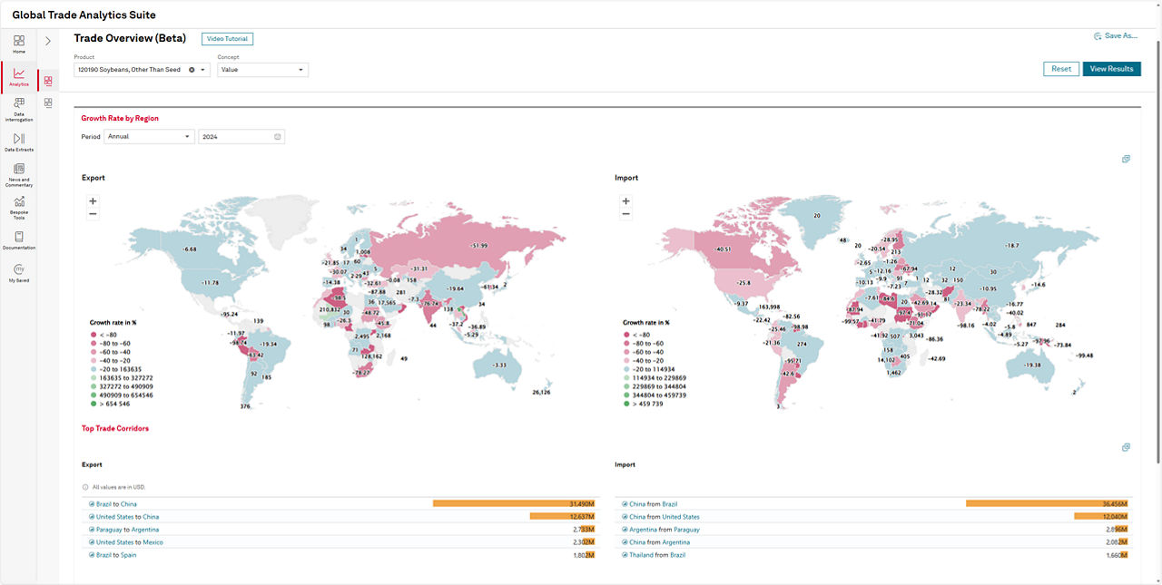 Global Trade Corridor Identification: Instantly identify and analyze the largest trade corridors for your chosen products.