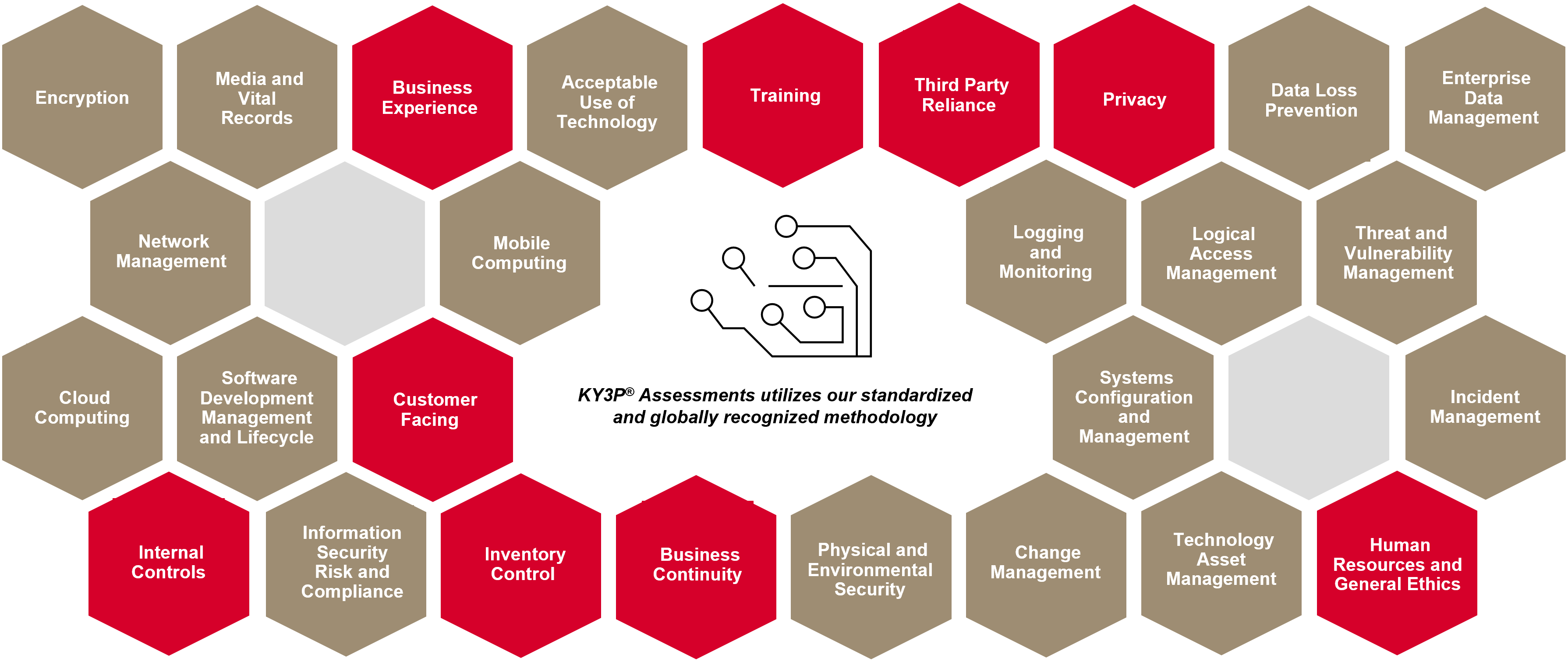 KY3P® methodology covers 27 diversified control domains - Comprehensive risk management across multiple areas, including data security, vendor management, and regulatory compliance.