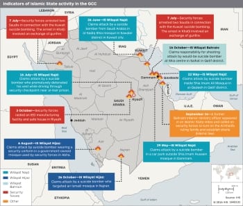 The Islamic State, through three of its 'provinces', claimed a series of attacks in the Gulf Cooperation Council (GCC) region during 2015. All except one (a 26 June attack on a Shia mosque in Kuwait) occurred in Saudi Arabia.