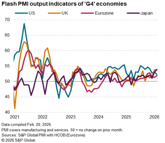 Fourth quarter GDP data are also released for India, which has been a sustained strong performer in the PMI rankings globally, albeit losing a little momentum at the tail end of 2025, as well as Singapore and Hong Kong SAR. Interest rate decisions are meanwhile due for Thailand and South Korea.