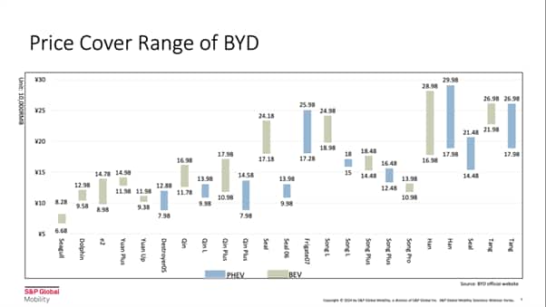 BYDが2024年販売ランキングで首位を獲得した主な要因の1つは、幅広いラインナップにあります。