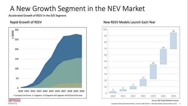現在、今後の新たな成長エリアとしてREEVが注目されています。REEVは構造上の制限で大型車両に適しており、基本的にはD/Eセグメントの車種に適用されると予想されます。