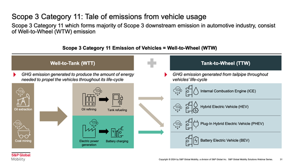 自動車産業におけるスコープ3の下流排出量の多くは、カテゴリー11(製品使用時の排出量)が占めています。このカテゴリーは、WTW(Well-to-Wheel)の排出量が基盤となっています。