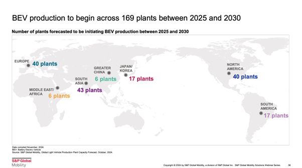 2025年から2030年の間に169の工場でBEVの生産がスタート