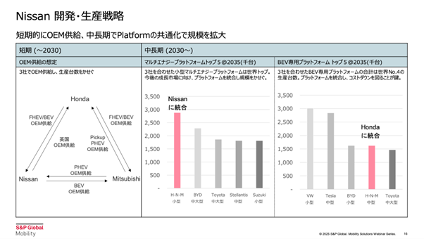 2030年以降は、プラットフォームの統合による規模の拡大が戦略の中心となります。3社共同で開発する「小型マルチエナジープラットフォーム」は、世界トップクラスの規模を誇り、成長市場への適用が期待されています。
