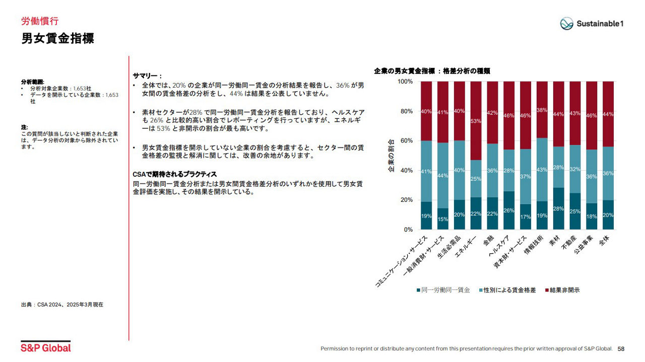 これらの分析成果は、GPIFが「2024年度 サステナビリティ投資報告」を作成するための基盤となりました。さらにS&PグローバルSustainable1 は、GPIF向けに「サステナビリティ関連情報および人的資本に関するパフォーマンス分析」という補足レポートを作成しました。このレポートは GPIF の年次報告書の関連資料としてGPIFのウェブサイトに公開されています。