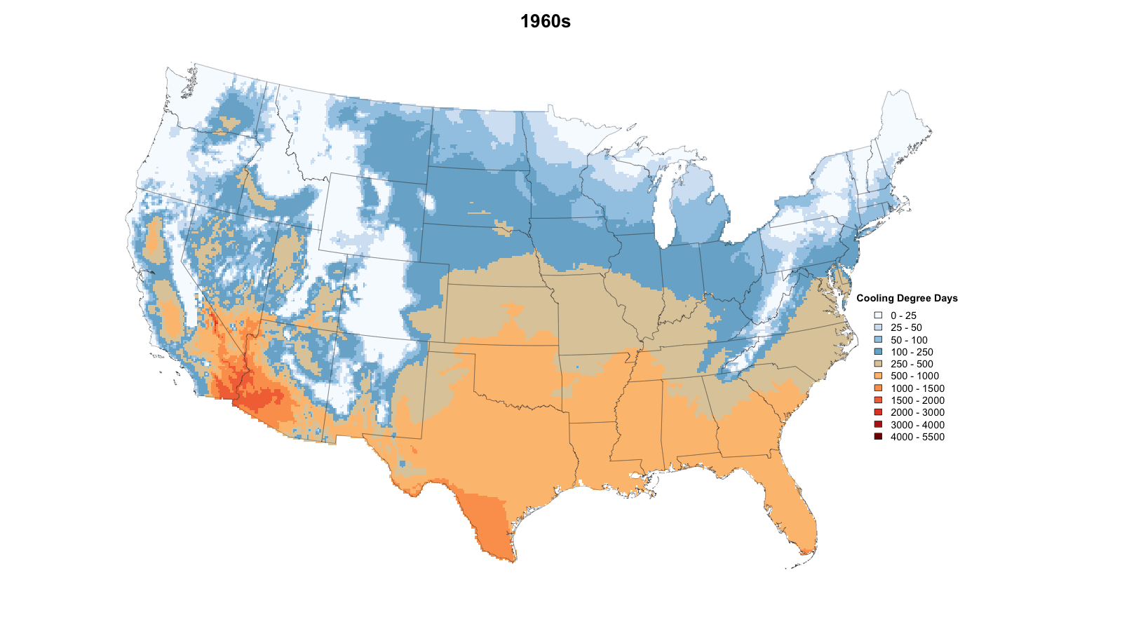 Cooling degree days (CDD) are a measure of how much the daily average temperature exceeds a base temperature (such as 65°F) and is used to estimate the demand for energy needed to cool buildings. Rising temperatures are pushing CDD to new levels, signaling a steady increase in heat persistence and cooling demand. As climate patterns evolve across regions, higher CDD levels highlight where energy infrastructure may face growing operational pressure and electricity demand. Tracking these trends across future decades helps identify where heat-related risks could become increasingly material for energy systems and investment planning.