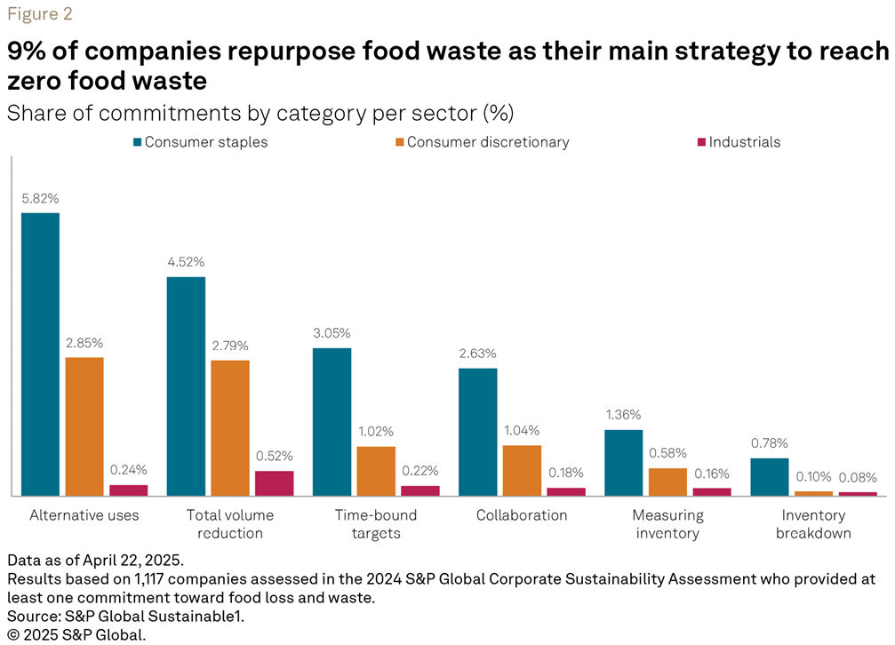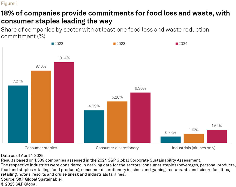 Within our ESG Scores and data, underpinned by the S&P Global Corporate Sustainability Assessment (CSA), we assess companies’ efforts toward food loss and waste reduction.