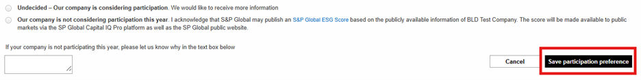 The dates in the second column show the date when the company's participation window will start, allowing registered users to add to the pre-filled questionnaire. Once the company completes their review and if applicable provides additional or updated disclosure, it will submit the questionnaire back to S&P Global for final review and scoring.