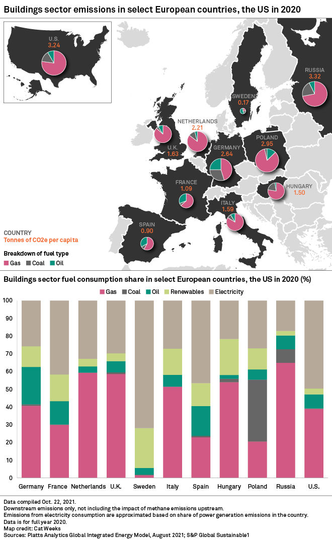 Fuel consumption and emissions data from S&P Global Platts Analytics’ Global Integrated Energy Model shows that reducing housing sector emissions will be key to achieving 2030 emissions targets in Europe and the U.K. But the challenges vary by country.