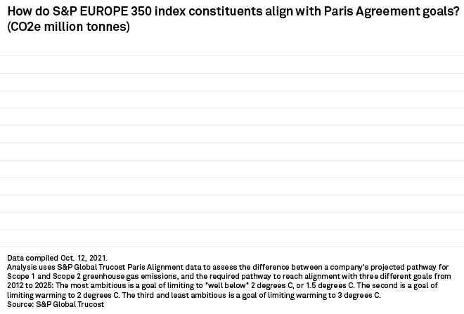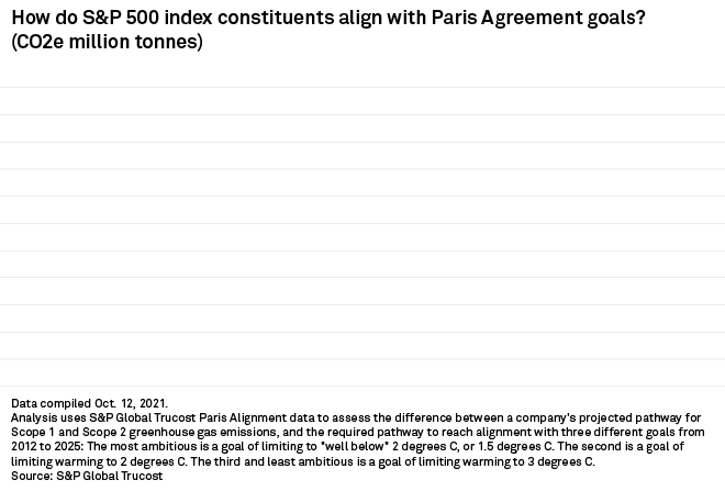 Almost every sector in the S&P 500, S&P EUROPE 350 and S&P Asia Pacific LargeMidCap is over budget on Scope 1 and Scope 2 emissions relative to Paris Agreement goals, S&P Global Trucost data shows.